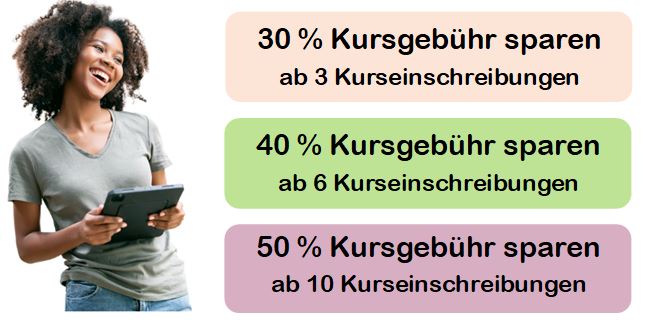 Der Kursteilnehmer entscheidet selbst, an welcher Variante der Präsenzveranstaltung er teilnehmen möchte. Alle drei Präsenzvarianten eignen sich für die Kommunikation zwischen Studierenden und Lehrenden. Von der ersten Stunde der Fort- und Weiterbildung betreuen wir unsere Kursteilnehmer/innen (24/7).